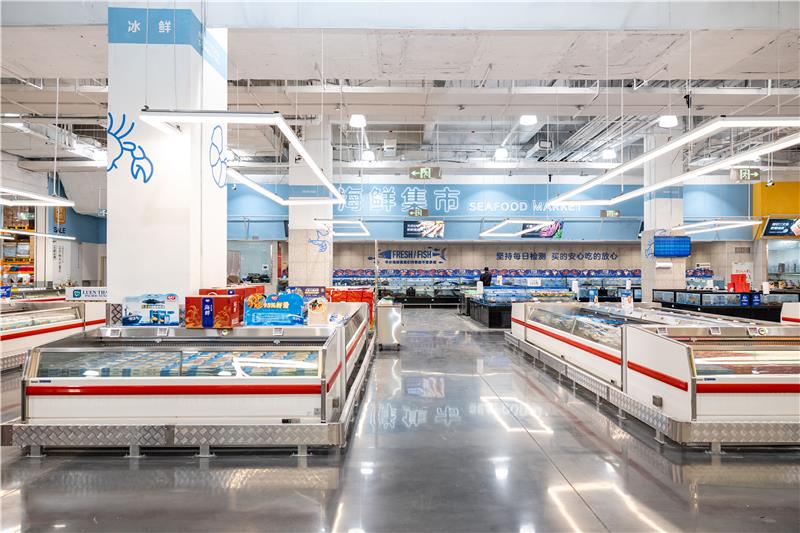 與未改造的永輝超市門店相比,世紀金源店改動不小。兼顧日常生鮮食品消費和節(jié)假日集中采購,是這家店呈現(xiàn)出得一大訴求。