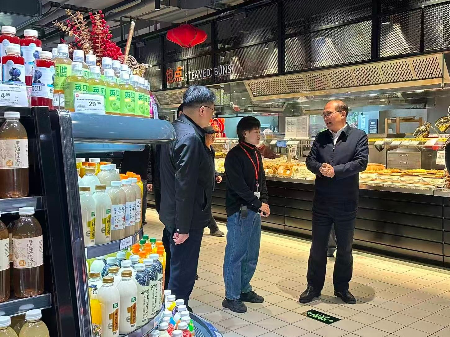 2月11日,全國工商聯(lián)黨組成員、副主席王受文一行來到北京永輝魯谷店調(diào)研,看到琳瑯滿目的年貨禮盒,門店洋溢著濃厚的新年味,王受文充分肯定了永輝超市調(diào)改的全新面貌,并與永輝超市有關(guān)負(fù)責(zé)人座談交流,深入了解企業(yè)發(fā)展與經(jīng)營難點(diǎn),鼓勵(lì)永輝緊抓中央提振消費(fèi)政策機(jī)遇,堅(jiān)定信心、創(chuàng)新突破。